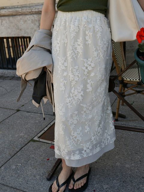 [티엔느] [리퍼브] Floral Veil Skirt_Ivory