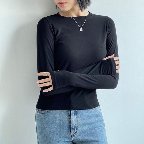 [다잇템]여자 쫀쫀스판 딱붙티 손등워머 티셔츠 (18993191A)