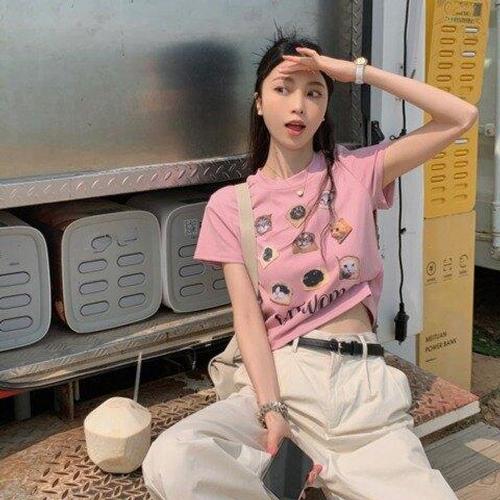 [에이치플러스몰]페리나셔링티 패턴 슬림 크롭 반팔 라운드 유니크 산 S U넥 흰색 나시 긴팔