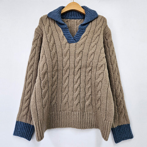 나야홍 / 빅사이즈 502 페리배색카라꽈배기티 DEBT609