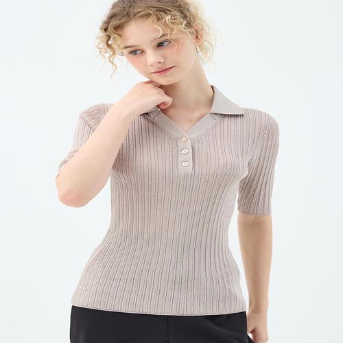 [유닛]글리터 오픈 카라 페리윙클 폴로넥 풀오버 (UFKKPN320N-L/BEIGE)