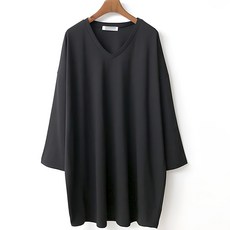 티탁 여성용 빅사이즈 루즈핏 겹브이 롱 긴팔 티셔츠