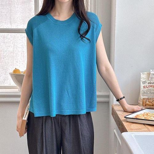 [다잇템][다잇템] 여성 파란색 슬리브리스 비침 워터밤 U넥 스타일_21956148_588872