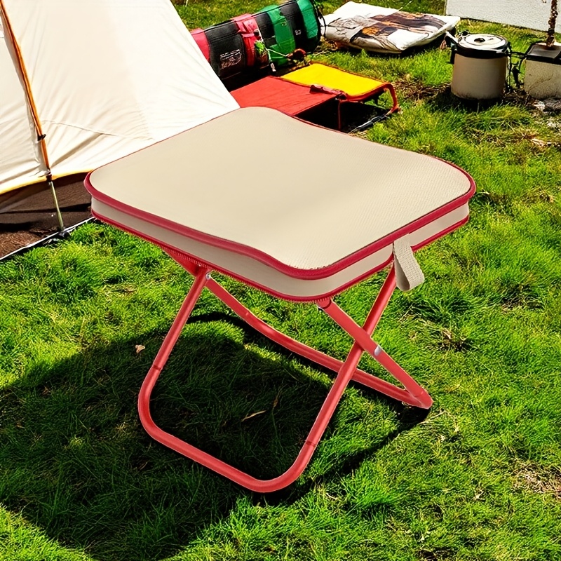 TEMU 휴대용 접이식 캠핑 스툴 - 경량 컴팩트 아웃도어 낚시 및 학생 기숙사 벤치, 레드/옐로우 악센트, 백패킹, 하이킹, 축제용 내구성 있는 견고한 디자인 | 사각 좌석 디자인 | 튼튼한 구조