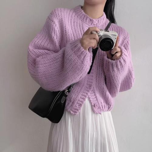 [셀럽하우스]여성 APII3348 봄 가을 파스텔 니트 카라 골지 가디건 퍼플