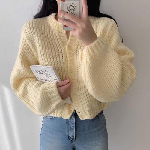 은은한 파스텔 여성 심플 라운드넥 베이직 가디건