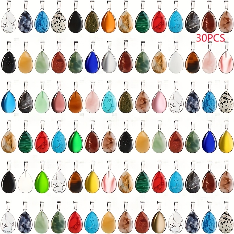 TEMU 30개의 유리 눈물 펜던트 세트, 혼합된 유리 펜던트, DIY 보석 목걸이 만들기에 이상적, 휴일 선물로 이상적입니다.