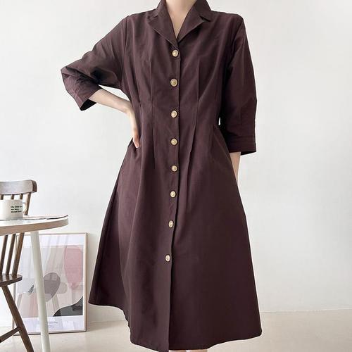 [셀럽하우스]여성스러운 UCWY4526 버튼 포인트 브이넥 롱 셔츠 원피스