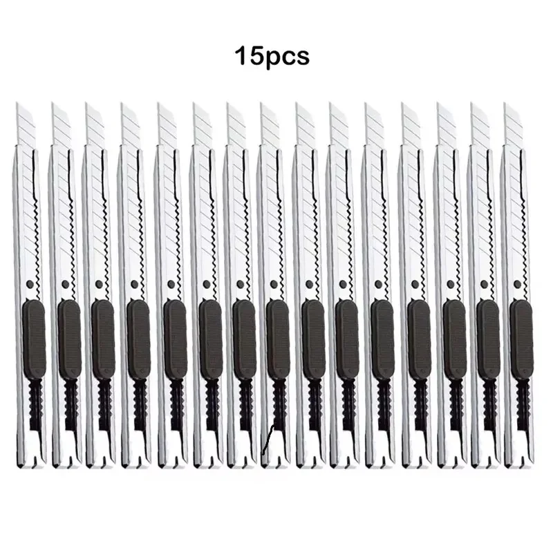 15pcs 스테인레스 스틸 개폐식 유틸리티 나이프 9mm 스냅 오프 블레이드 취미 칼 박스 커터 집에서 절단에 적합