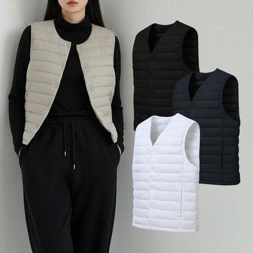 [셀러허브_여성트랜드패션]Rly 남녀공용 브이넥 얇은 경량 패딩조끼 V넥 기모조