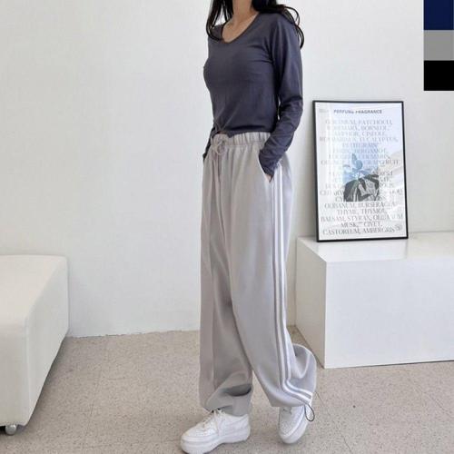 [오너클랜]인기상품 여자 와이드 트랙 팬츠 밑단 스트링 조절 가능한 커플 트레이닝 바지 [WFLLJ2T_260305]