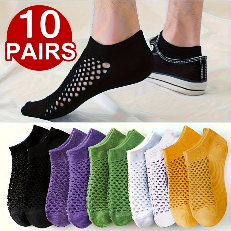 TEMU 5/10 쌍 남성용 통기성 메쉬 발목 양말 - 경량, 미끄럼 방지 여름 양말, 다양한 색상 - 캐주얼한 착용을 위한 편안한 로우 컷 디자인, 부드러운 질감 마감