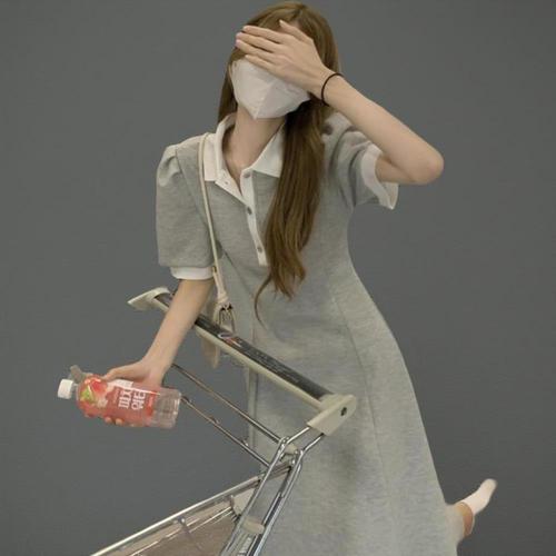 |CCO5672|여성 심플 컬러 배색 카라넥 퍼프소매 반팔 롱 드레스