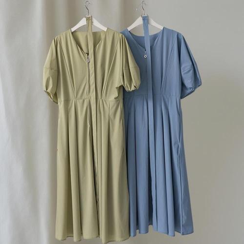 |CSO5620|여성 여름 하객용 반집업 브이넥 플레어 퍼프 롱드레스