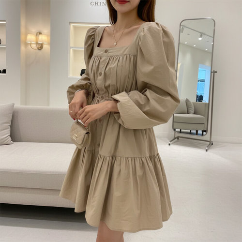 슈팅스타 / 셔링 라인 데일리 로맨틱 스퀘어넥 퍼프 미니 원피스