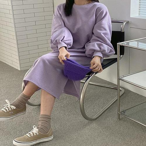 [하젤]샤프란 옆트임 퍼프 기모 롱원피스_S4504