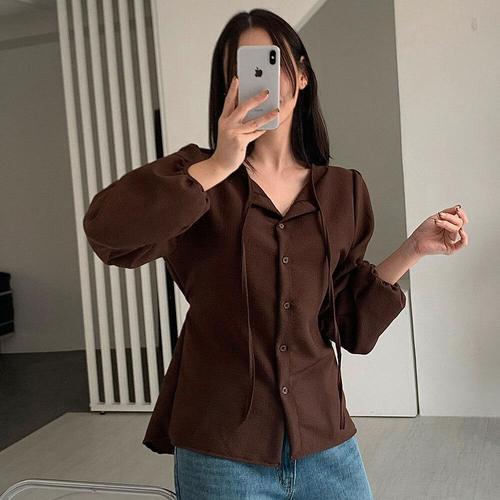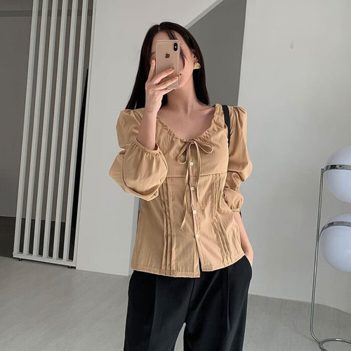 [옷자락]여자 허리끈 슬림핏 버튼 퍼프 가을하객룩 블라우스