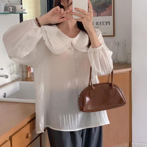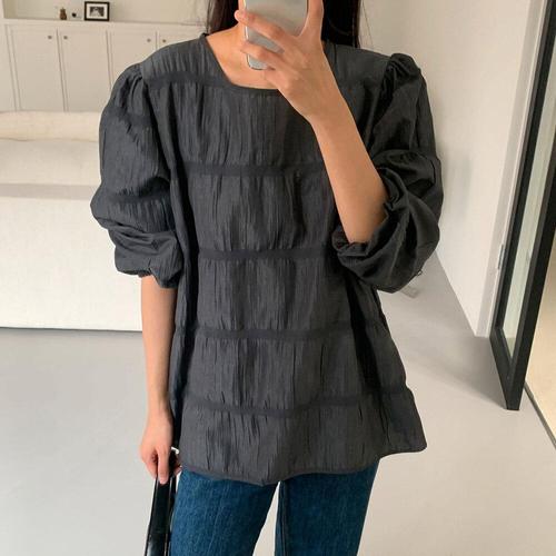 [옷자락]여자 링클 티어드 라운드넥 퍼프 루즈핏 가을 블라우스