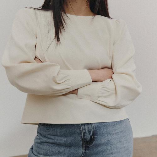 비비에모 라운드넥 유니크 퍼프 숄더 블라우스 07088