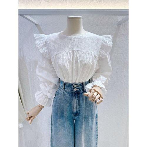 [셀럽하우스]데이트룩 SUEM8870 블라우스 데일리 펀칭 레이스 1P 긴팔 프릴