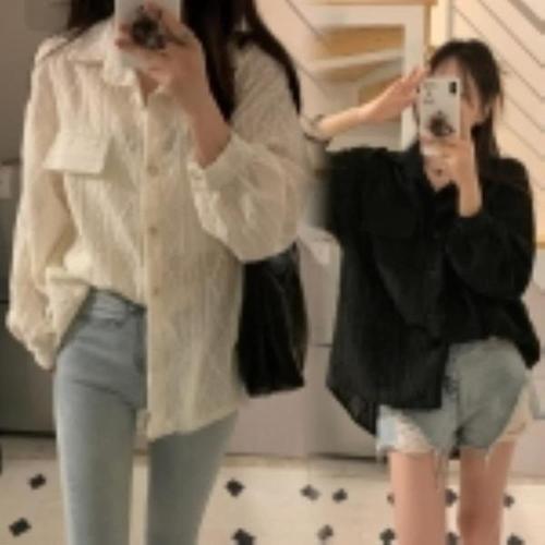 [신상오픈런]여자 화이트 펀칭 레이스 브이넥 긴팔 블라우스