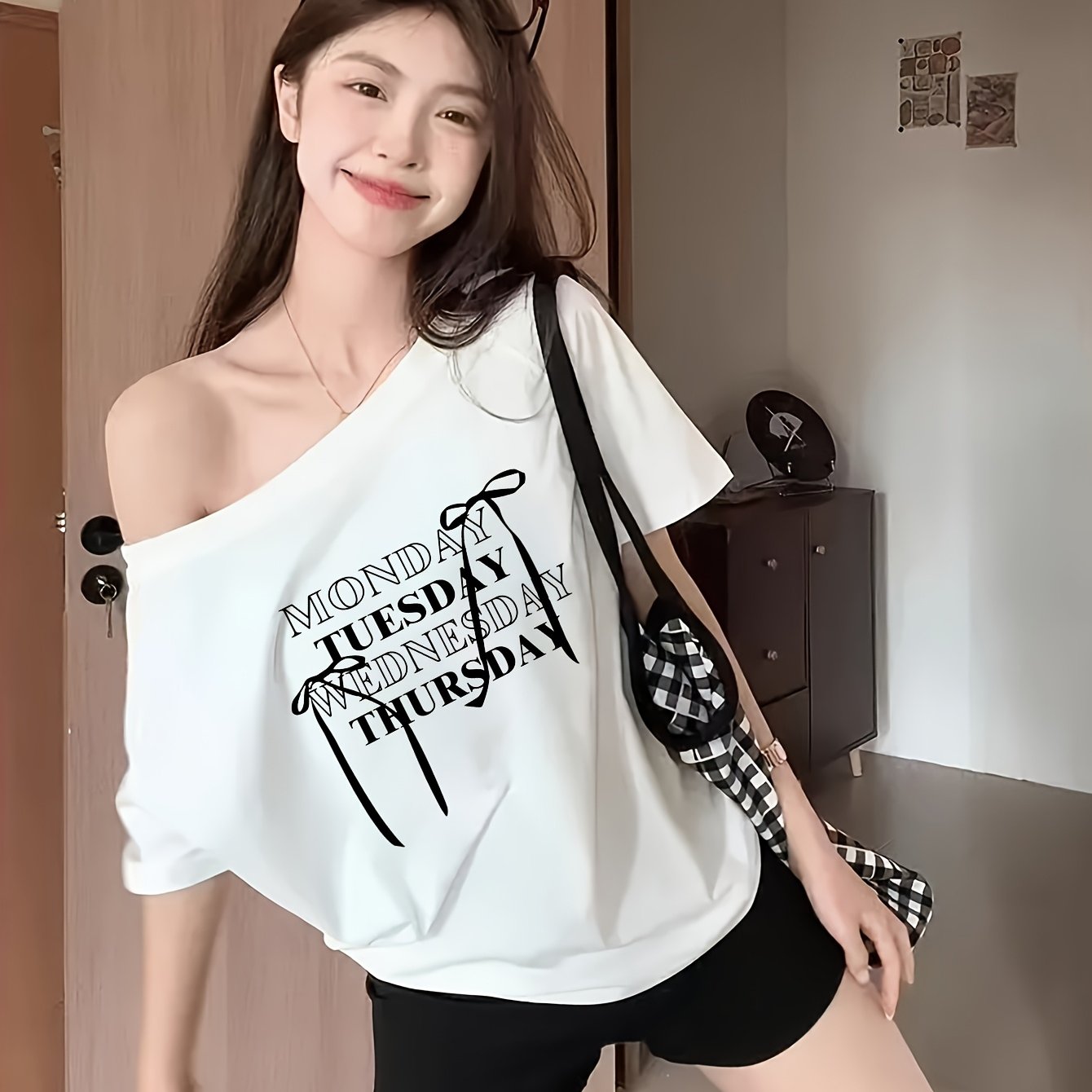 TEMU 오프숄더 여성용 반팔 탱크탑, 크루넥 루즈핏 패션 이너웨어 베이스 레이어 셔츠