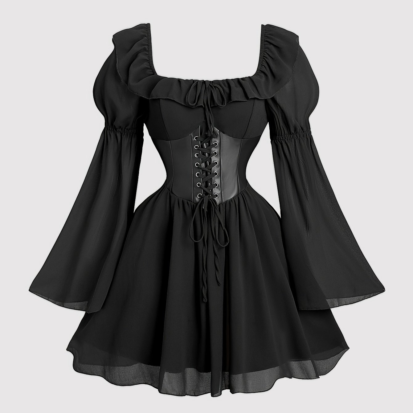 TEMU 가을 러플 A라인 빈티지 드레스, 세미 포멀 드레스, 여성 가을 의류, 리본 드레스, 아름다운 긴소매 드레스, 오프숄더 타이웨이스트 슬림핏 커뮤터 드레스, 크리스마스, 베이비돌 드레스