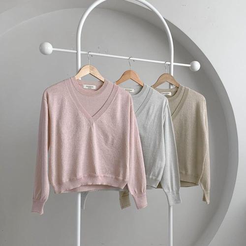 [VY] 여자 레이어드 브이넥 펄니트 슬리브리스 세트