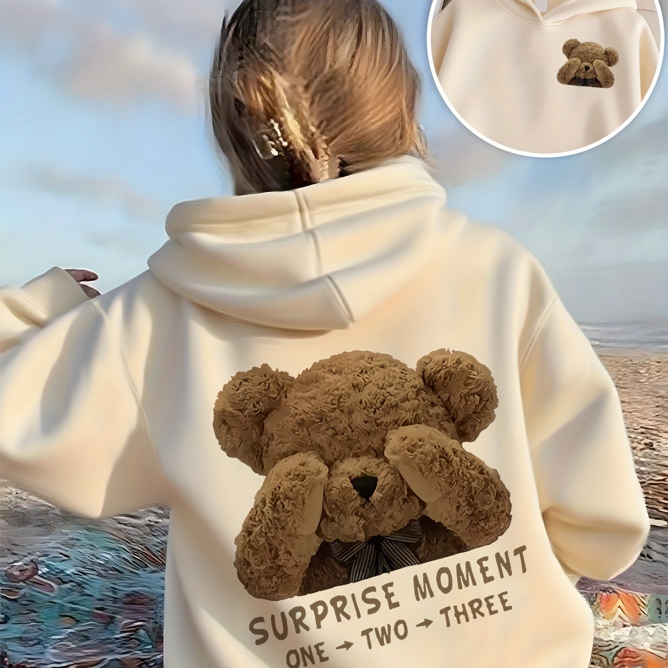 TEMU 여아용 귀여운 곰돌이 후드 스웨트셔츠 - 부드러운 파스텔 색상에 깜짝 놀라게 하는 문구, 루즈핏 긴소매 풀오버 후드티 (봄/가을용), 캐주얼 칼리지 스타일, 세탁기 사용 가능한 여아 의류, 봄 가을 의류, 장난기 넘치는 디자인, 편안한 소재