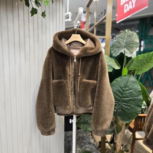 스테파니 HC05 후드숏포켓밍크점퍼JP 여성2컬러 페이크퍼점퍼 크롭점퍼 A24