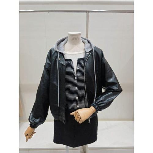 [무자크]페이크레더 니트후드 가죽자켓 MP7LJ08