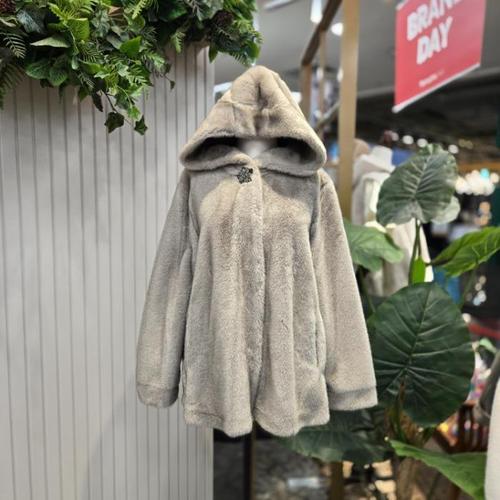 스테파니 HC05 후드브로치미디퍼자켓JK 여성2컬러 페이크퍼 브로치 A24JK44