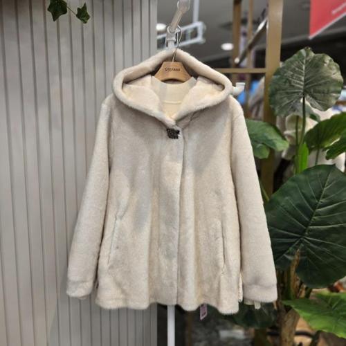 스테파니 HC05 후드미디퍼자켓JK 여성2컬러 페이크퍼 브로치 A24JK4434HK1