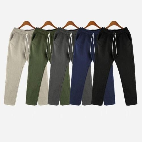 남자바지 린넨 허리밴딩 통바지 여름 슬랙스 편한바지 (WFJ7UM6)