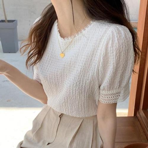 [다잇템]여자 패턴 포인트 레이스 미니멀리즘 블라우스 (13098901A)