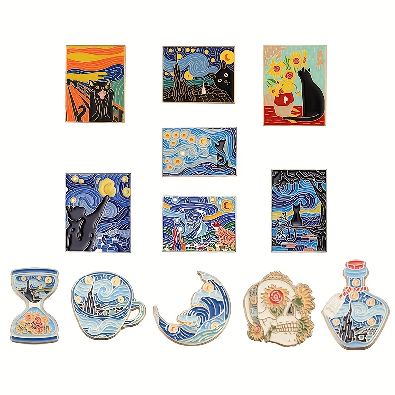 TEMU OPPRYN 고양이 유화 브로치 창의적인 아트 브로치 남녀 공용 금속 버클 바늘 의류 백팩 액세서리 소품 선물 세트 (12개)