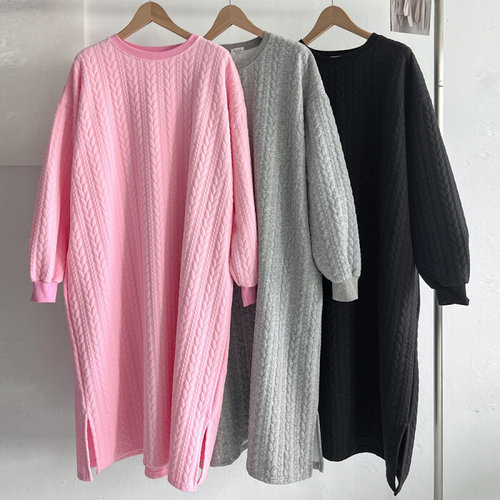 [옷자락] 여성 겨울 박시핏 꽈배기 롱홈웨어 원피스 포켓 포함