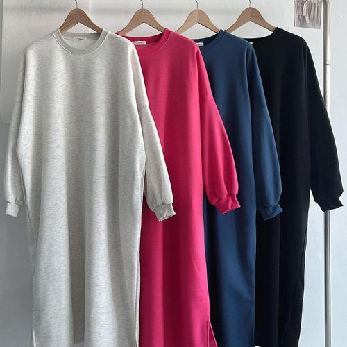 [신상오픈런]여성 골덴 두 포켓 기모 롱원피스 빅사이즈 겨울 슬릿 드레스