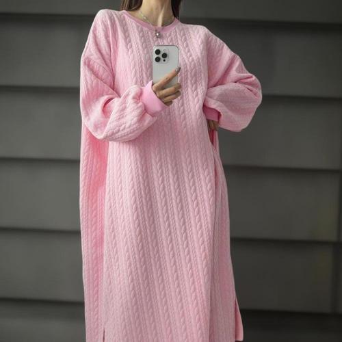 [옷자락]여성 겨울 박시핏 꽈배기 롱홈웨어 원피스 포켓 포함