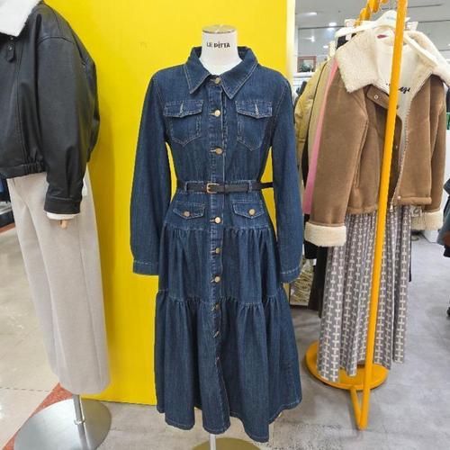 [모리스커밍홈][벨트SET]포켓 카라 데님 롱 원피스_M2508OP084C