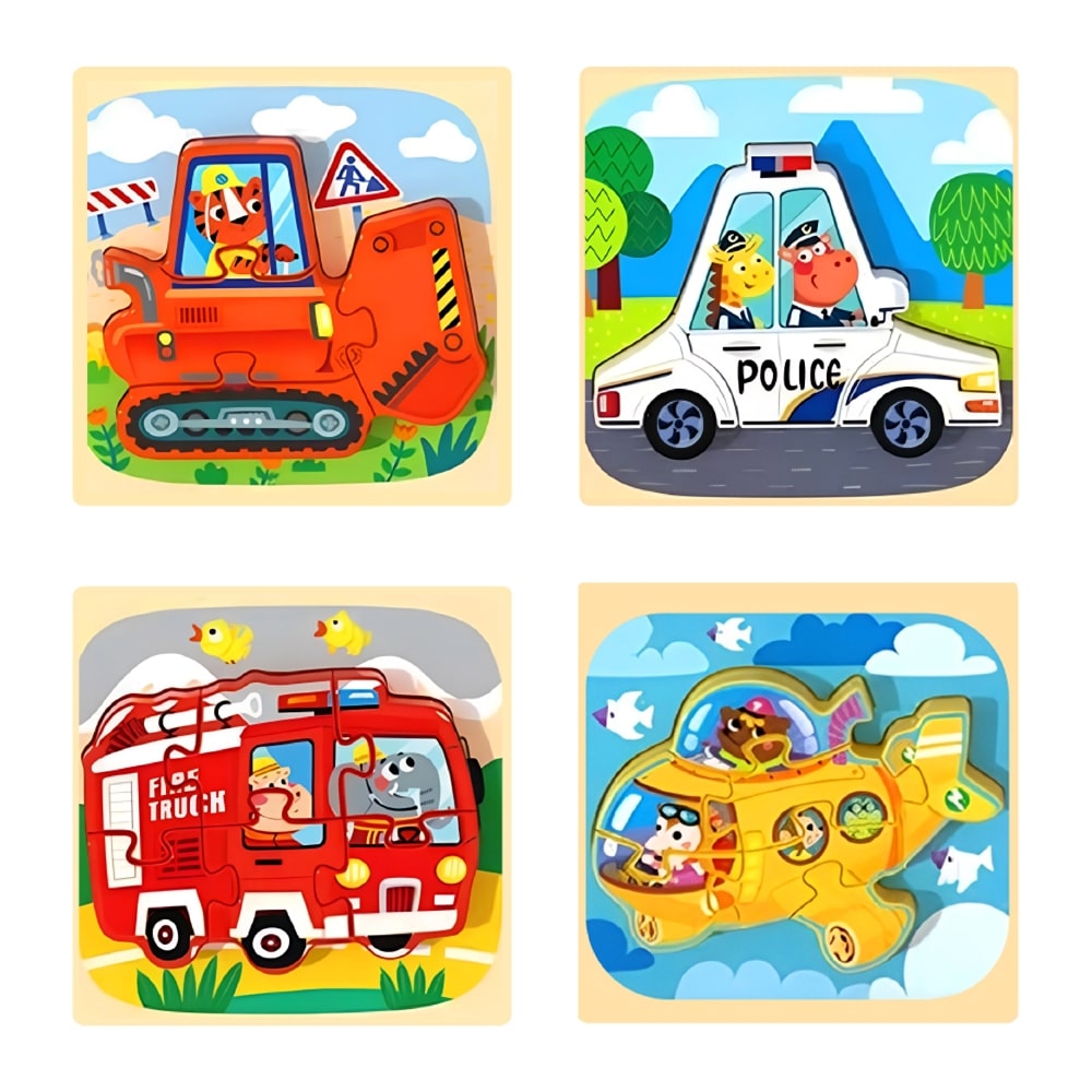 브레인버니 유아 원목퍼즐 4종세트 포크레인+경찰차+소방차+비행기