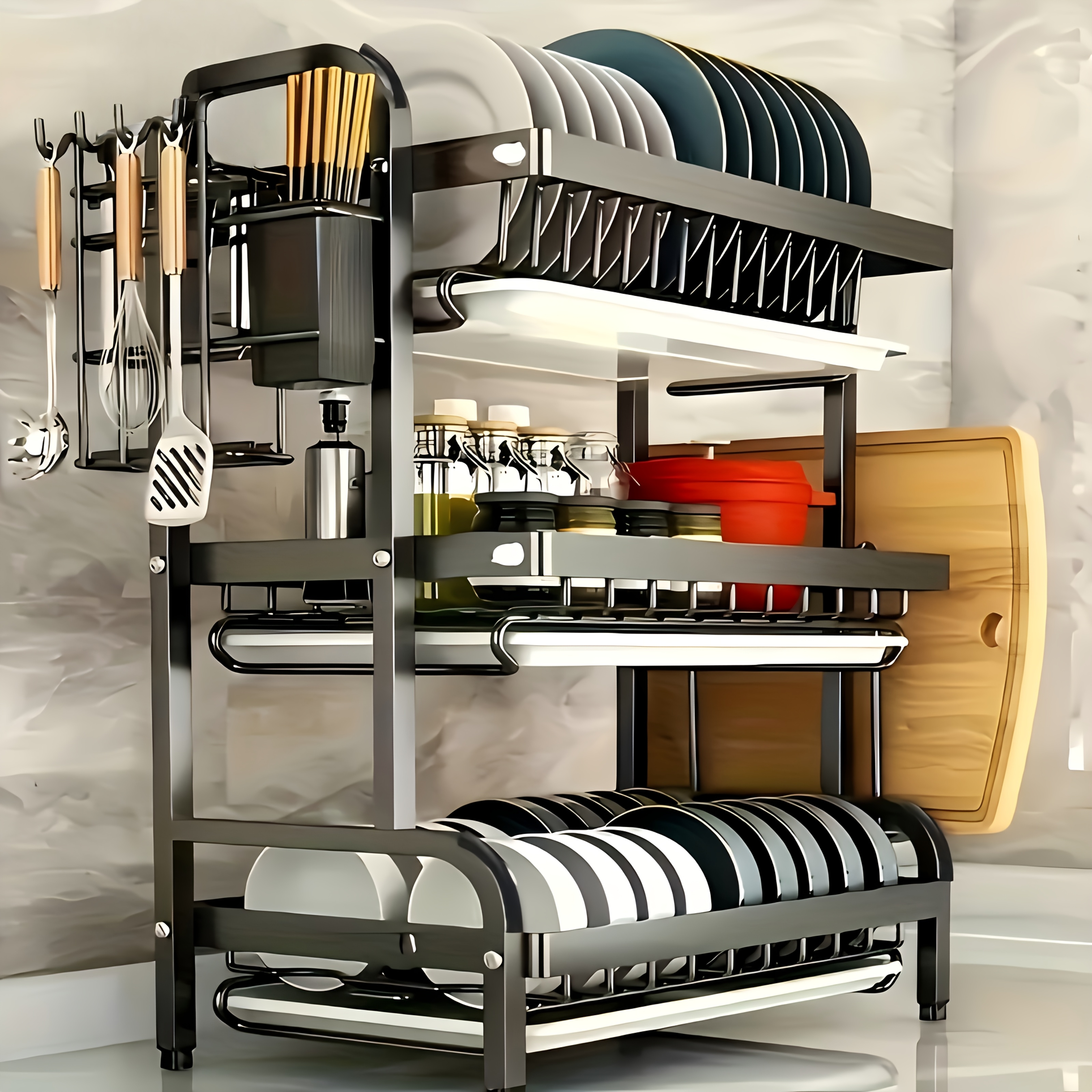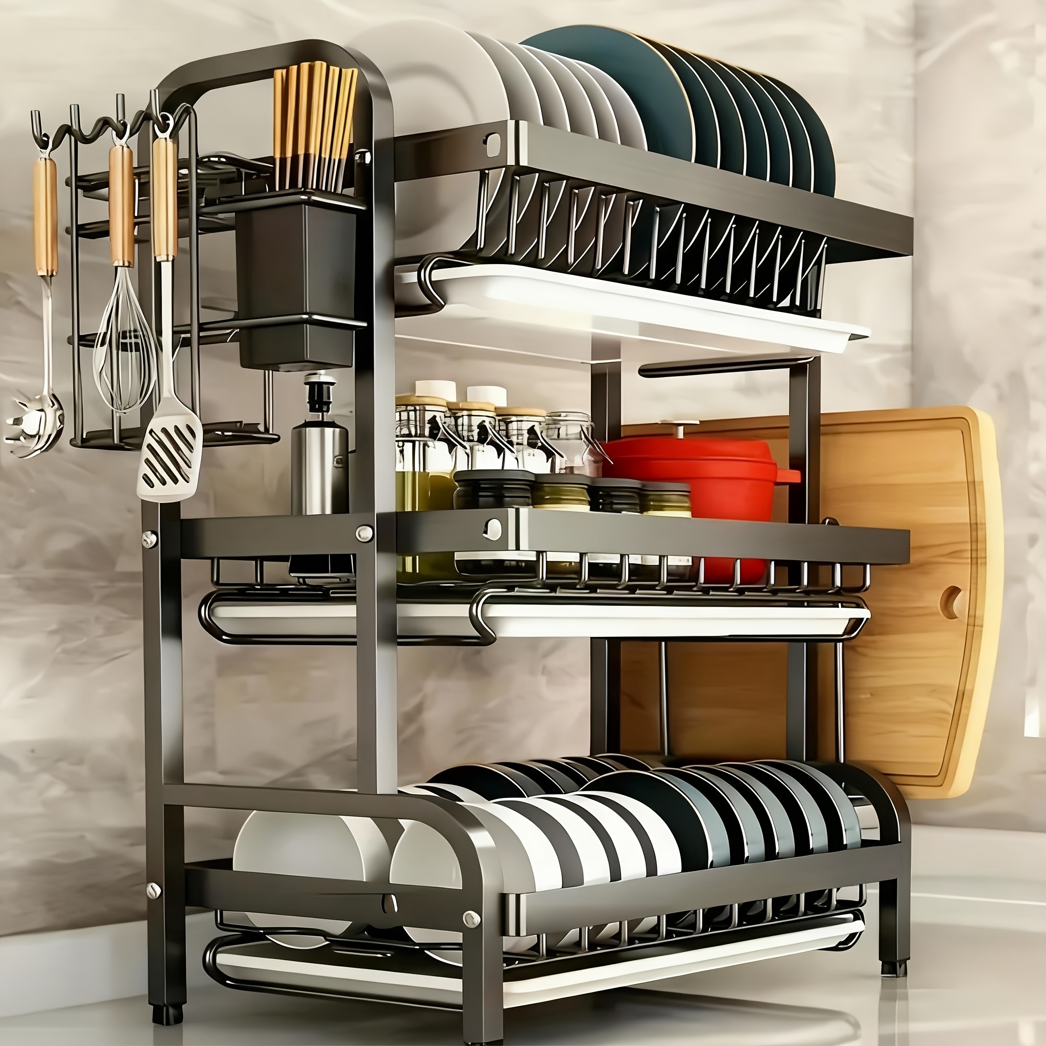 TEMU 1개 대형 헤비듀티 3단 주방 수납 선반 (도마 거치대 & 포크 랙 포함) - 공간 절약형 멀티 접시 건조대, 주방용품 정리대, - 소형 및 대형 주방용 견고한 식기 건조대|식기건조대|식기건조기