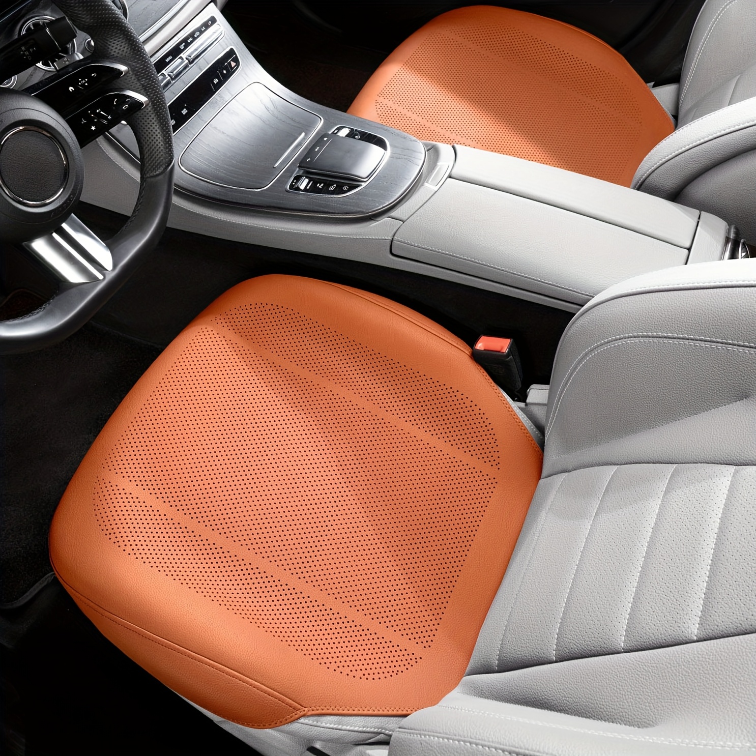 TEMU 핏 PU 가죽 자동차 시트 쿠션 - 타원형 사계절용 부드러운 스펀지 충전 시트, 미끄럼 방지 및 먼지 방지 커버, 전면/후면/트렁크용 (대부분의 차량 호환) - 간편 설치, 도구 불필요