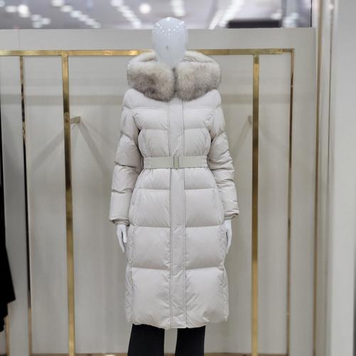인퀼팅 벨티드 폭스퍼 구스 롱다운 ER4TD006