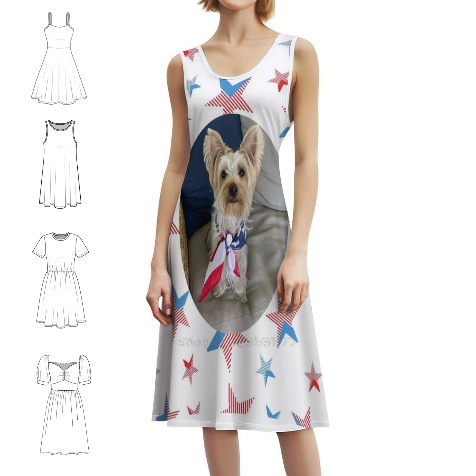 애국적인 요키 스윗하트 넥라인 드레스 여성을 위한 우아한 여름 파티 드레스 애국적인 애국자 미국과 줄무늬 드레스