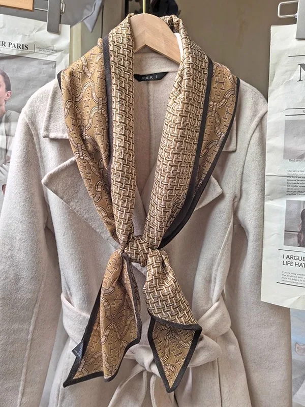레트로 더블 레이어 실크 스카프 목 보호 프린트 장식 따뜻한 겨울 가을 한국 스타일 폴리에스터 기하학 패턴 여성 스카프