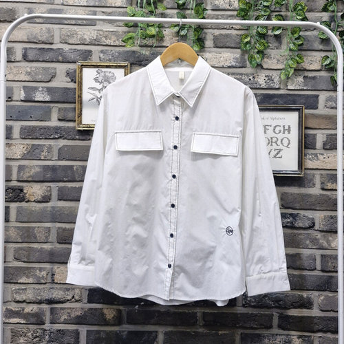 퐁당 / 포켓 디테일 자수 로고 셔츠 블라우스