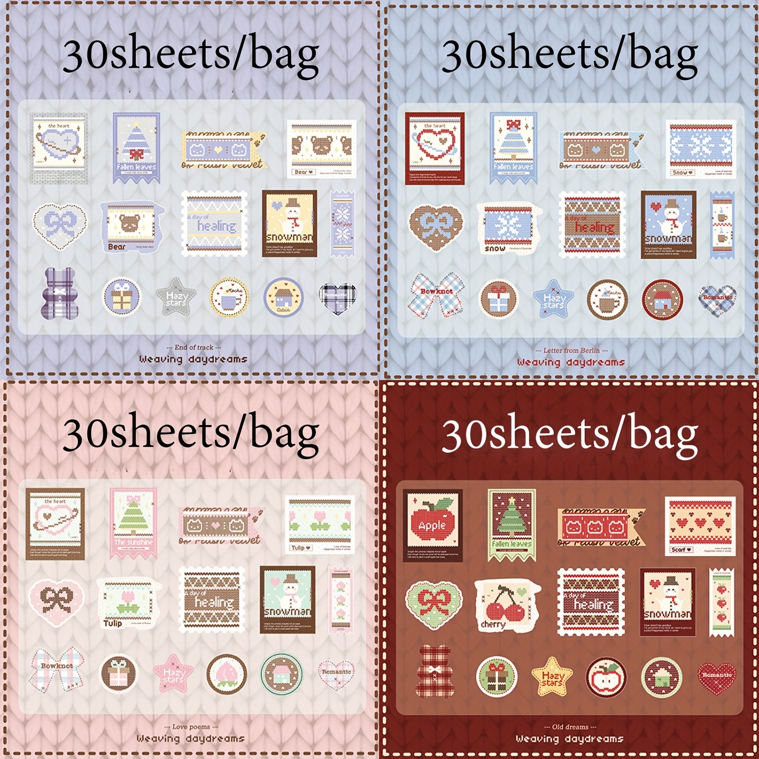 TEMU 120장/봉지 (4종 x 30장) /한국/카와이 스티커북 - 벚꽃, 체크무늬, 하트, 곰 & 문구가 있는 구리판지 스티커 - 스크랩북, 저널, 플래너, 물병 데칼, 생일 선물용