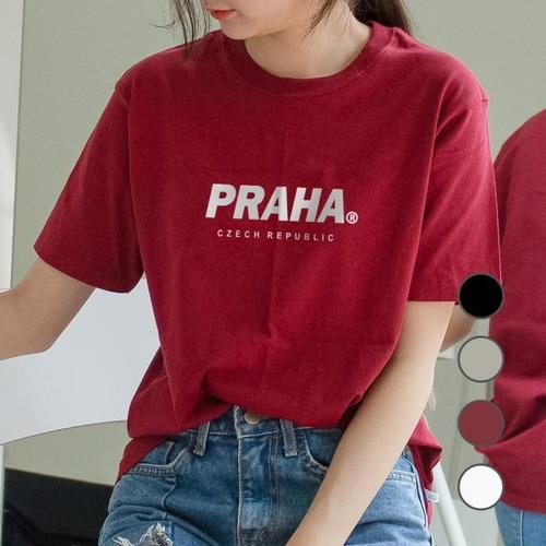 [험블][험블] 프라하 레터링티 라운드넥 루즈핏 남녀공용반팔티 (7031978A)