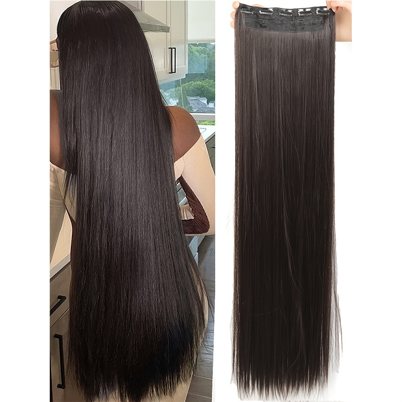 TEMU 여성용 40인치 실키 합성 클립 인 헤어 익스텐션 - 쉬운 클립 시스템으로 즉시 볼륨과 길이를 늘릴 수 있으며 모든 사용자에게 적합함